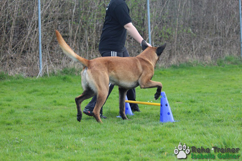Mit Hilfe von verschiedenen Geräten wird die Stabilisation und Koordination des Hundes gefördert oder auch das